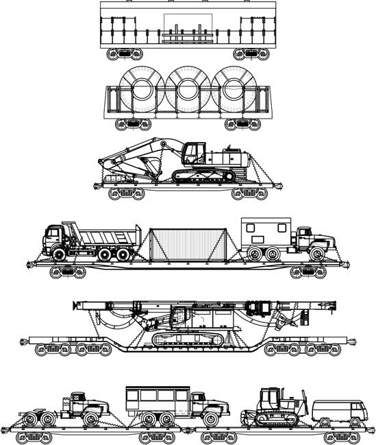 При перемещении негабаритного груза такого типа используют специальные полуприцепы – тралы с заниженной высотой платформы. Экскаваторы доставляются к месту строительства или в труднодоступные районы в полном рабочем (при необходимости и не в рабочем)состоянии .