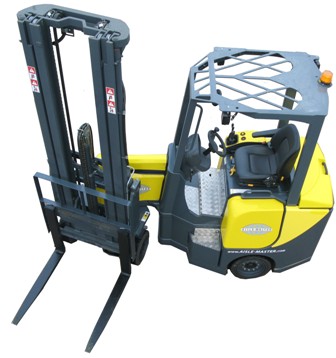 Этот вилочный погрузчик использует систему управления транзисторами переменного тока с независимыми двигателями подъема, рулевого управления и вспомогательными двигателями. Рулевое управление с гидростатическим усилителем и рекуперативное торможение возвращают энергию аккумуляторной батарее для повышения эффективности и продолжительности работы.