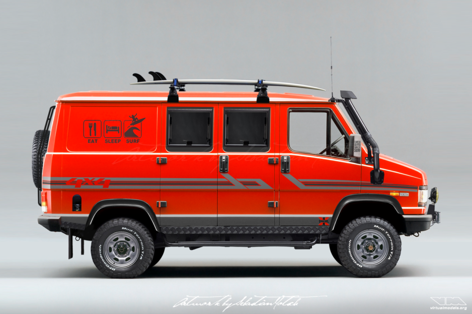 Преобразование предшественника Sportsmobile West 4×4 было разработано для оригинального фургона Ford Econoline.