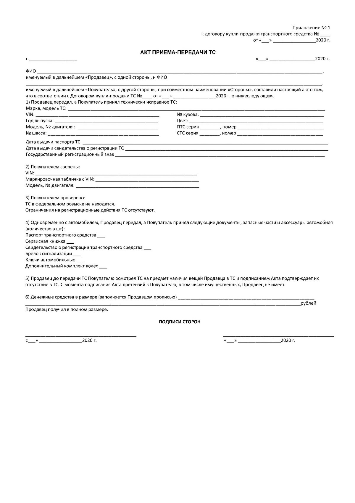 Составляется акт приема-передачи автомобиля в двух экземплярах, по одному для каждого из участников сделки.