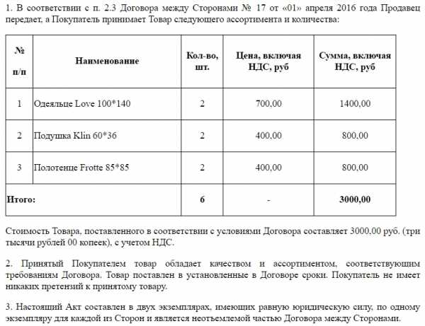 Акт приема-передачи товара. Образец заполнения 2019 года