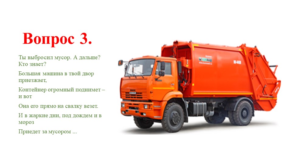 - Мусоровозы для сбора, уплотнения, перевозки и выгрузки твердых отходов