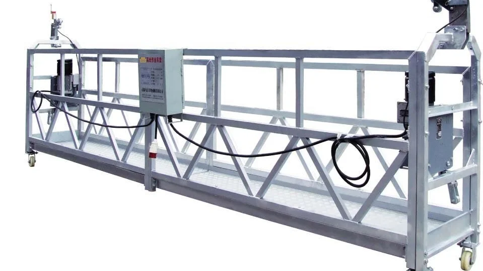 Строительная люлька состоит из металлической платформы, тросов, контргруза, консолей, лебедок, кабелей, ловителей и пульта управления. В зависимости от сложности высотных работ можно выбрать модель с нужным вылетом консоли (до 1,7метра).