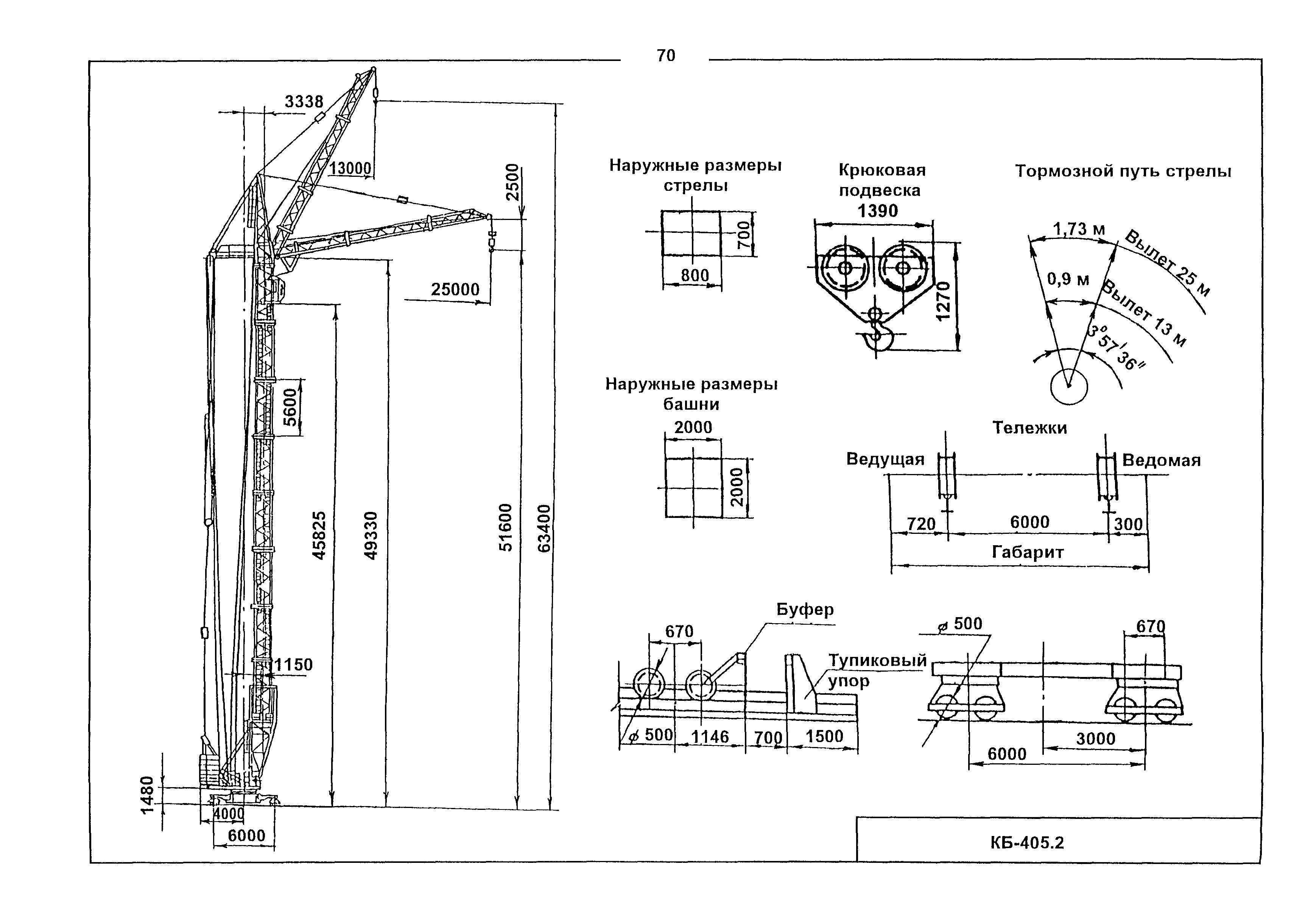 По нижнему концу стрелы, имеющему вид двутавровой балки, перемещается грузовая тележка. Противовесная консоль удерживается в горизонтальном положении тягами. На площадке противовесной консоли размещены три лебедки: грузовая, стреловая и передвижения грузовой тележки.
