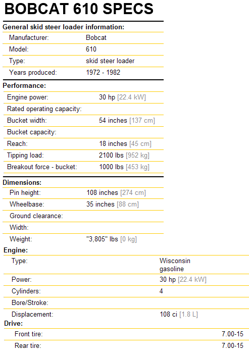 | Технические характеристики минипогрузчика BOBCAT S205 | |