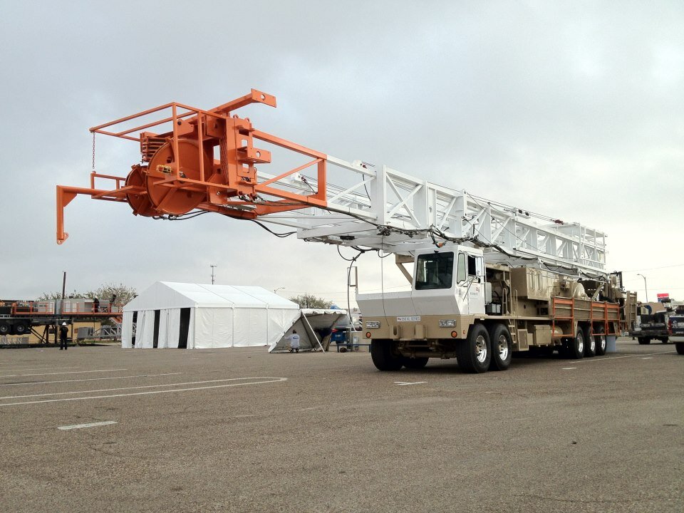 У буровой установки RD20 с грузоподъемностью 120 000 фунтов теперь есть родственная установка, высокомобильная установка Predator с грузоподъемностью 200 000 фунтов, на разработку которой ушло пять лет, и только сейчас завершаются полевые испытания. Ожидается, что первая производственная установка начнет работу в сентябре этого года на сланцевом месторождении в Техасе.
