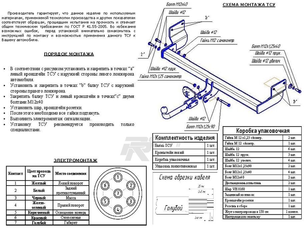При выборе покупаемого фаркопа следует руководствоваться следующими характеристиками.