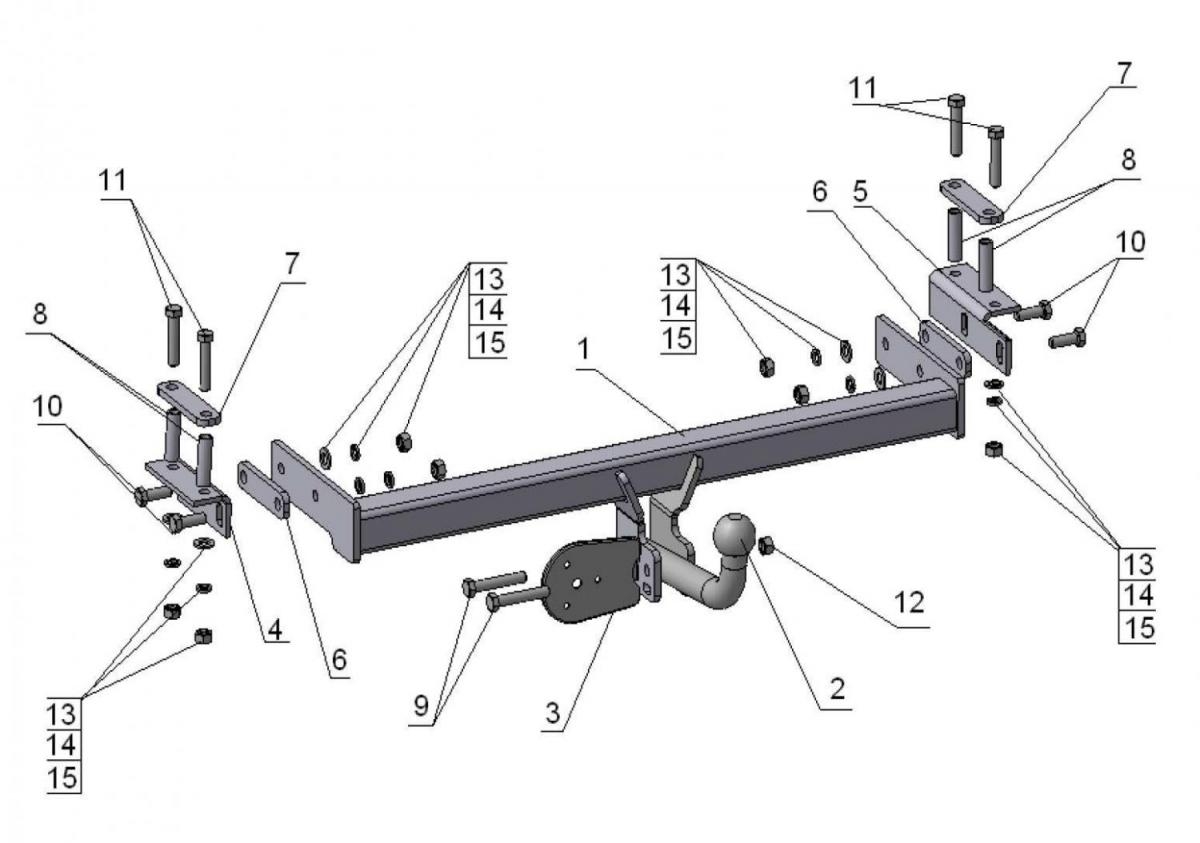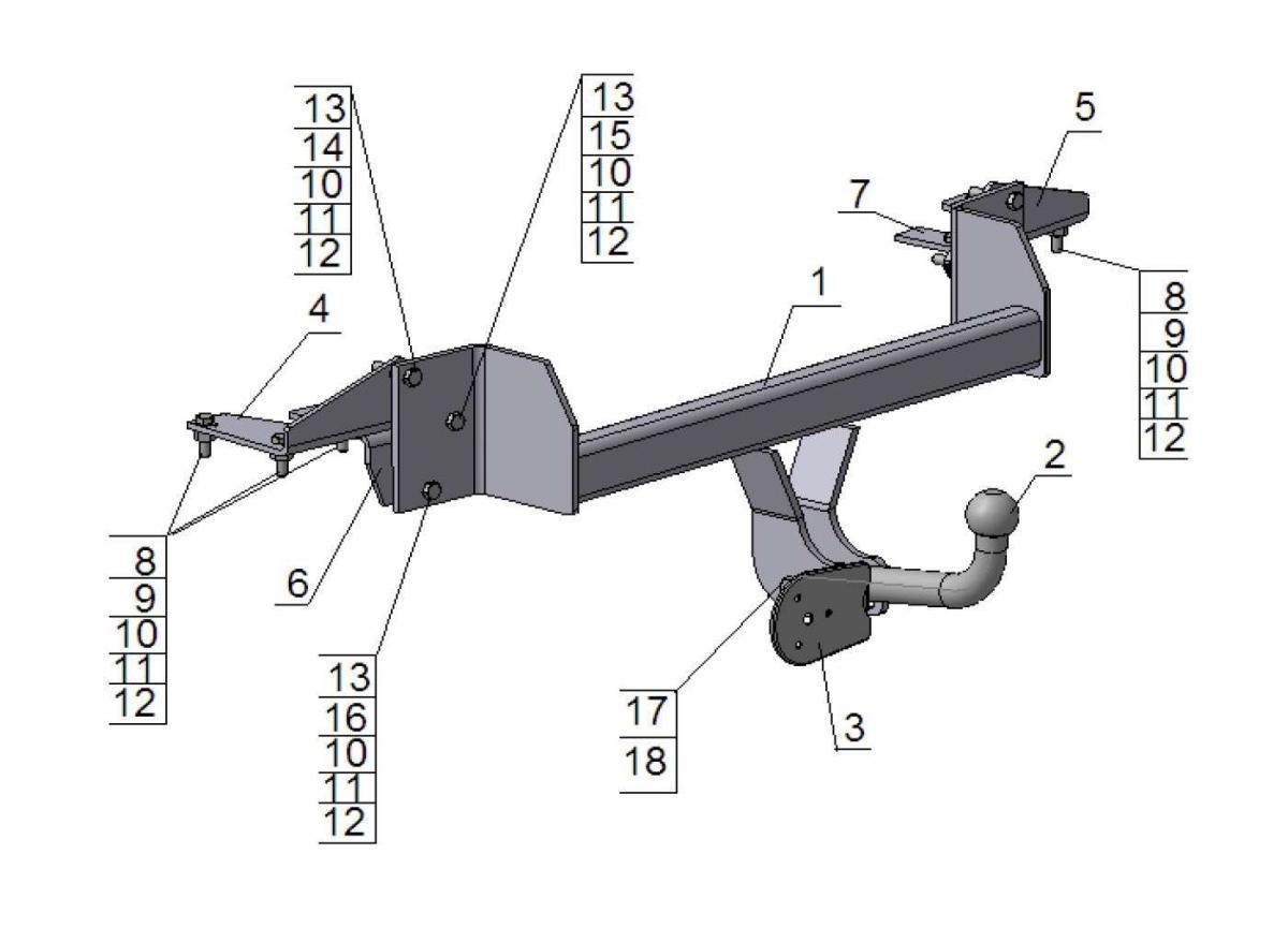 В первом случае все узлы фаркопа крепятся болтовым соединением. Делается это для удобства монтажа сцепного устройства к автомобилю. Но это не означает что разборное сцепное менее надежно чем полностью сварное, при условии, что метизы имеют высокий класс прочности не ниже 8.8.