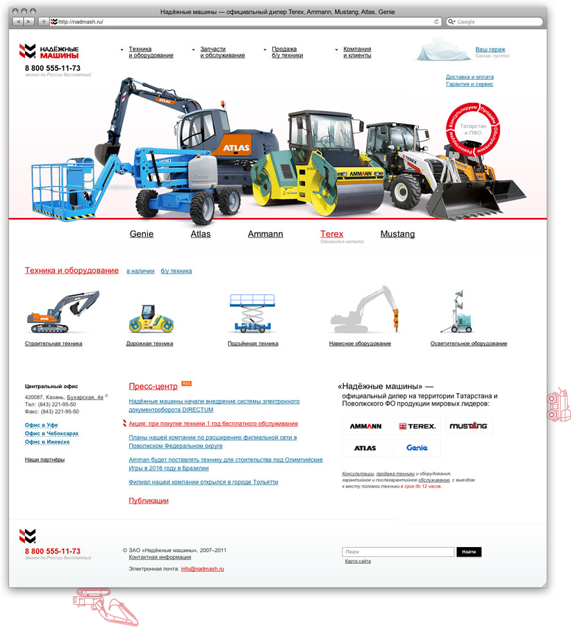 Компания «Техстройконтракт» является одним из лидеров российского рынка дорожно-строительной техники, сдаче в аренду и сервисному обслуживанию дорожно-строительной техники, продаже запчастей и перевозок различных видов тяжёлой техники, включая карьерные экскаваторы, карьерные самосвалы, гусеничные краны и и другие специальные машины. Сайт: http://www.t-s-c.ru/ |