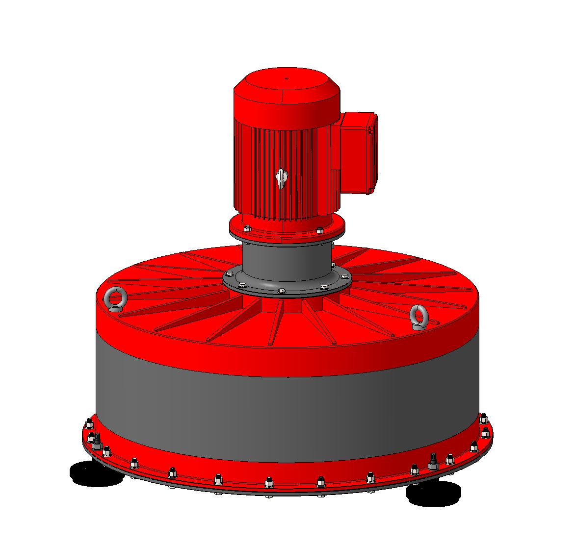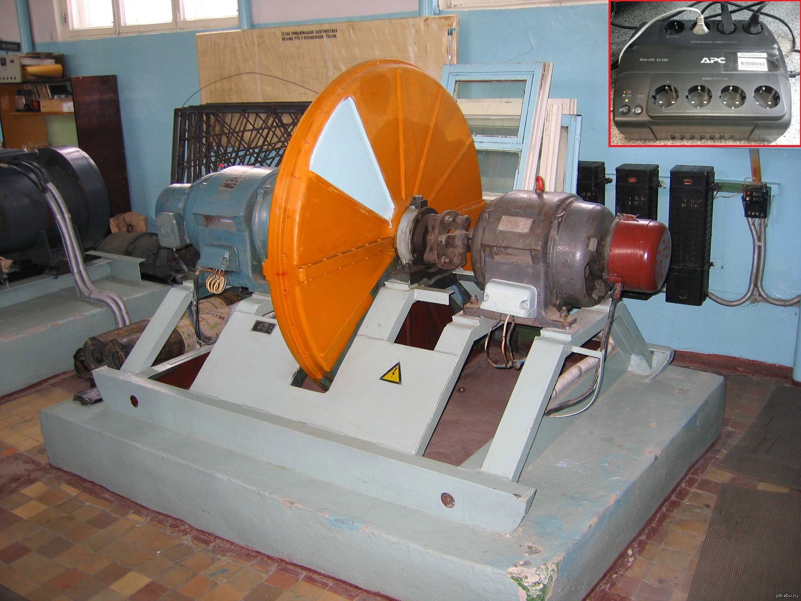 Вертикально установленный трехфазный электродвигатель был непосредственно соединен с каждым валом маховика.