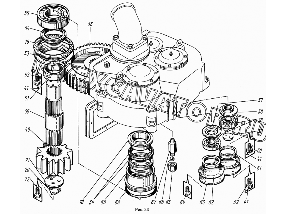 - Механические узлы: опорно-поворотные устройства, коробки отбора мощности, редуктора.