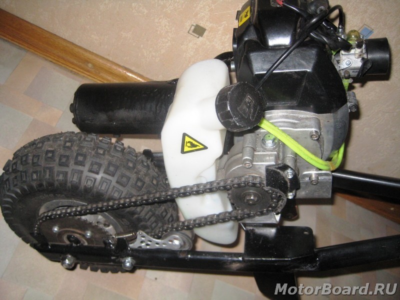 У нас надежный двухтактный двигатель, который работает на топливной смеси: