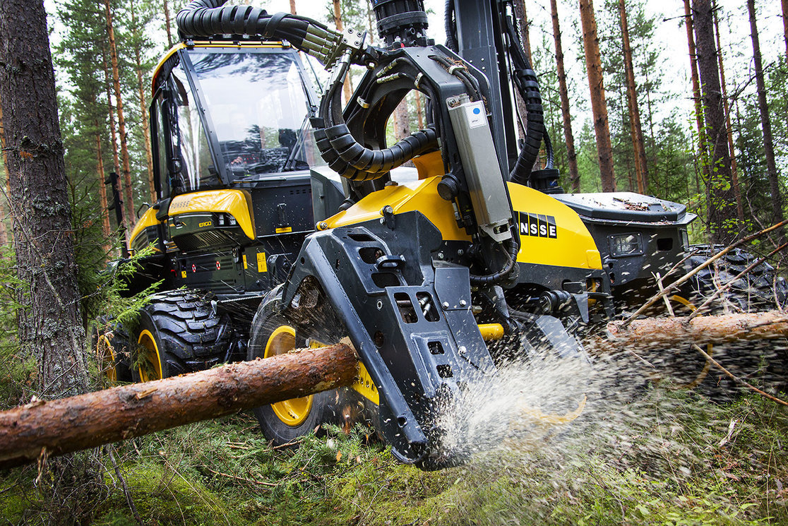 Благодаря системе управления, отвечающей за согласованную работу гидравлики, дизельного двигателя и трансмиссии, машина может двигаться даже при работающем манипуляторе и харверстерной головке.