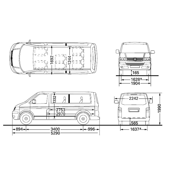 Размеры кузова Volkswagen Transporter T4 – Таблицы размеров