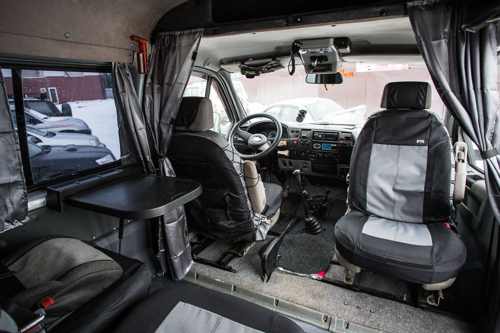 Штатный подогреватель и два отопителя обеспечивают комфортную температуру в салоне даже в холодное время года. Важная отличительная черта «Соболя» — огромный объём внутреннего пространства.