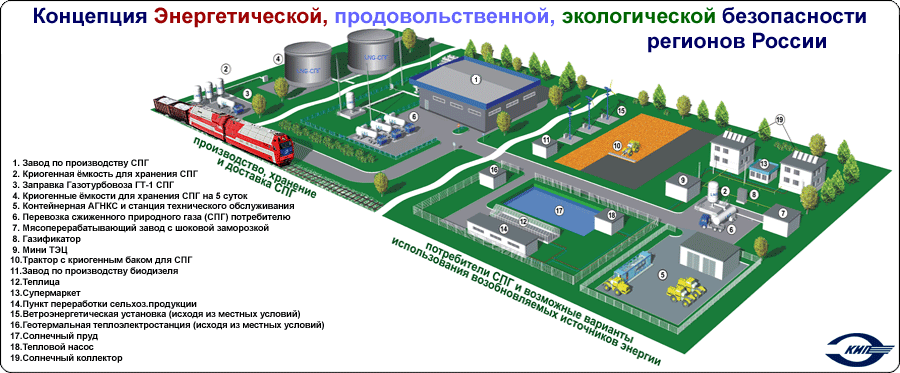 С учетом особенностей газотранспортной системы России, в частности наличием газораспределительных станций с большим перепадом входного и выходного давлений, перспективным является устройство КСПГ на ГРС по циклу среднего давления с применением турбодетандерных агрегатов.