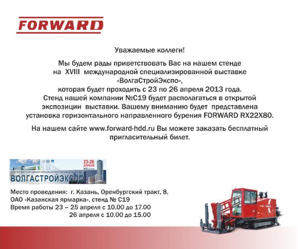 Первая установка ГНБ линейки FORWARD была произведена в 2011 году. Представительства компании расположены в России, Казахстане, Белоруссии и на Украине. Ведется активная деятельность на международном рынке: буровые комплексы FORWARD работают в Турции и Индии, идут переговоры о поставках в страны Южной Америки, Ближнего Востока и всего постсоветского пространства.
