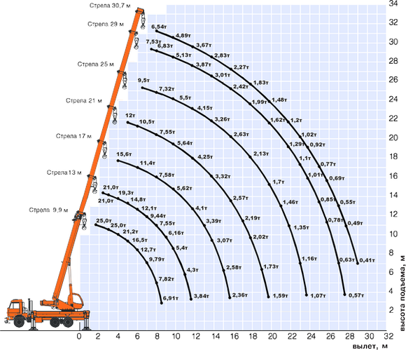 Автокраны грузоподъемностью 25 тонн технические характеристики