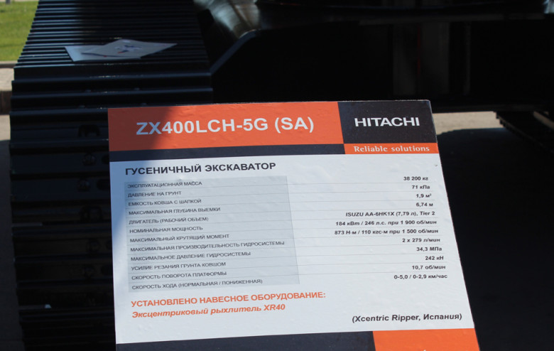 Этот экскаватор Hitachi zx 200 имеет средний размер, оснащен четырехтактным четырехцилиндровым двигателем Isuzu AH-4HK1XYSA-02, охлаждающимся при помощи воды. Его мощность 166л.с. Работает в ручном и в программном режиме. Стрела в длину достигает 5,68 метра, рукоять 2,91 метра. Его вес 22,399 кг и противовес 5350 кг. В этой модели крутящий момент повысили на 13%, а тягу на 11%.