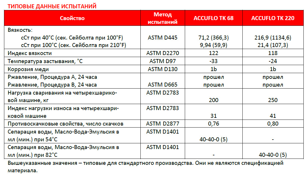 партии масла. Как правило, паспортные значения получены путем измерений в соответствии с ASTM D445.