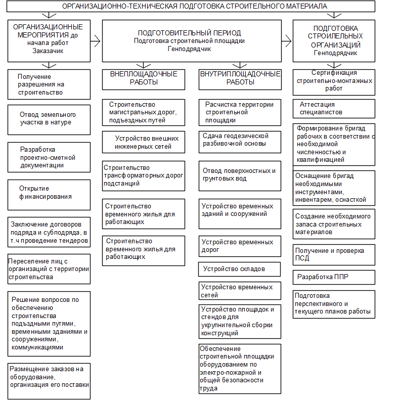 В каждом конкретном случае состав указанных процессов и методы их выполнения регламентируются природно-климатическими условиями, особенностями строительной площадки, спецификой возводимых зданий и сооружений, особенностями объекта – новое строительство, расширение или реконструкция и др.