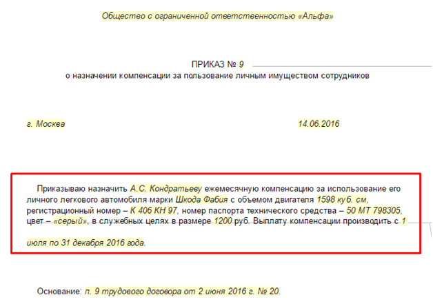 Если работа сотрудника связана со служебными поездками и он с согласия или ведома работодателя использует собственный автомобиль, работодатель выплачивает ему компенсацию за использование автотранспорта, а также возмещает расходы на ГСМ, техническое обслуживание и др.