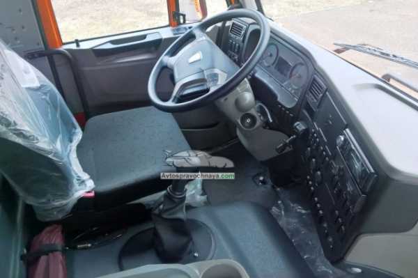 В кабине первое куда падает глаз – новое рулевое колесо. Еще бы – вместо старой тонкой “баранки” сюда установили современнейшее мультифункциональное рулевое колесо. Оно более приятно на ощупь, имеет удобный хват, а встроенными кнопками можно управлять аудиосистемой или бортовым компьютером. Аналогичное рулевое колесо будет установлено на новом флагмане компании – магистральном тягаче КАМАз-54901, который пойдет в серию в 2019 году.