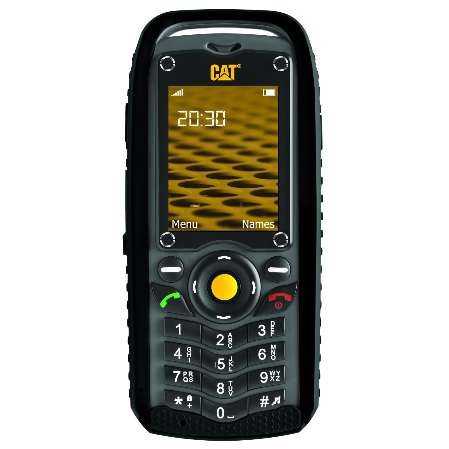 Вода, бруд і інша неагресивна рідка субстанція не проникне в телефон навіть за півгодини перебування на метровій глибині. Задня кришка надійно прівінчівается до телефону, так що апарат не розлетиться на елементи при падінні навіть з великої висоти. Прогумоване «гусеничне» обрамлення пристрою не тільки надає CAT B25 брутальний і потужний зовнішній вигляд, але і дозволяє ще надійніше тримати телефон в руках. Втім, для додаткового запобігання падінню пристрій забезпечений спеціальним карабіном, на якому також розміщені компас і ключ для згвинчування кріпильних болтів задньої кришки телефону. видно все Навіть 2-дюймовий TFT-дисплей, яким оснащений мобільний телефон Caterpillar CAT B25, має власний захист. Знаходиться він за щільним міцним склом, також кріпиться до корпусу спеціальними болтами. Навіть в разі пошкодження самого скла екран може не отримати ушкоджень, оскільки захисне покриття відстоїть від матриці майже на 5 мм. TFT не тільки забезпечує хорошу яскравість і контрастність зображення, але також дозволяє економніше витрачати заряд акумулятора.
