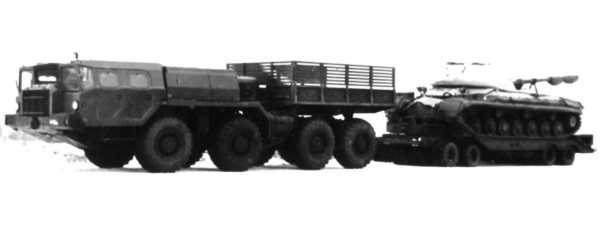 Полуприцепной агрегат 8У210 в транспортном положении с тягачом МоАЗ-546П