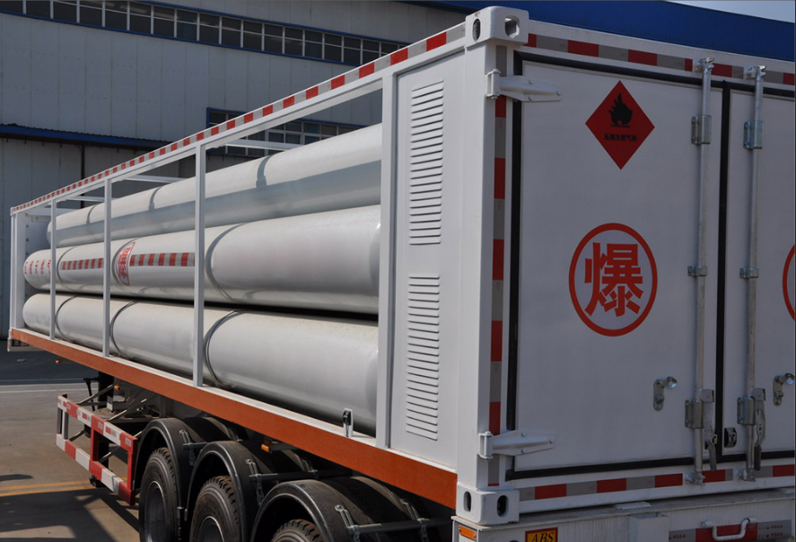 Хранение и транспортировка компримированного природного газа происходит в специальных накопителях газа под давлением 200—220 бар.