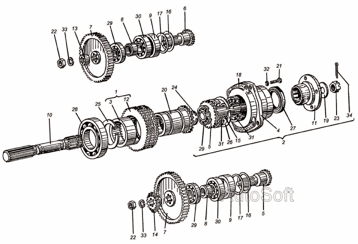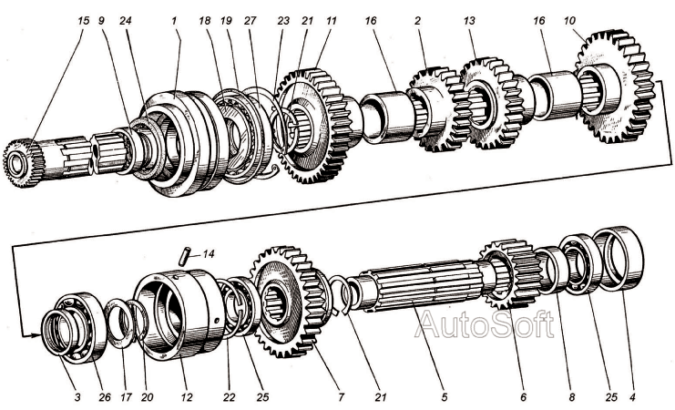 Еще одно значительное изменение, которое претерпела КПП: наличие ходоуменьшителя. При этом первичный вал обладает промежуточным соединением с механизмом сцепления. Обычно спецтехника включает в себя мягкие конструкции соединений — чаще всего это прокладки из резины. Однако в конструкции коробок передач Т 150 есть составляющие из металла, поэтому в устройстве соединения жесткие.