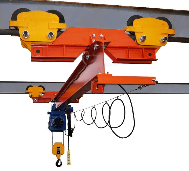 - Подвесной Здесь опорой колес являются нижние полки двухтавровых балок, которые подвешивают к потолочным конструкциям.