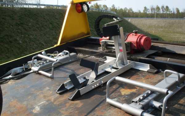 Платформа спецтехники должна иметь характерную перфорацию, которая улучшает сцепление колес с платформой. Под колесами должны находиться откатники, оснащенные боковым упором. Качество данного приспособления определяет уровень безопасности во время транспортировки машин. Устройства предотвращают продольное и поперечное смещение автомобиля на платформе эвакуатора.