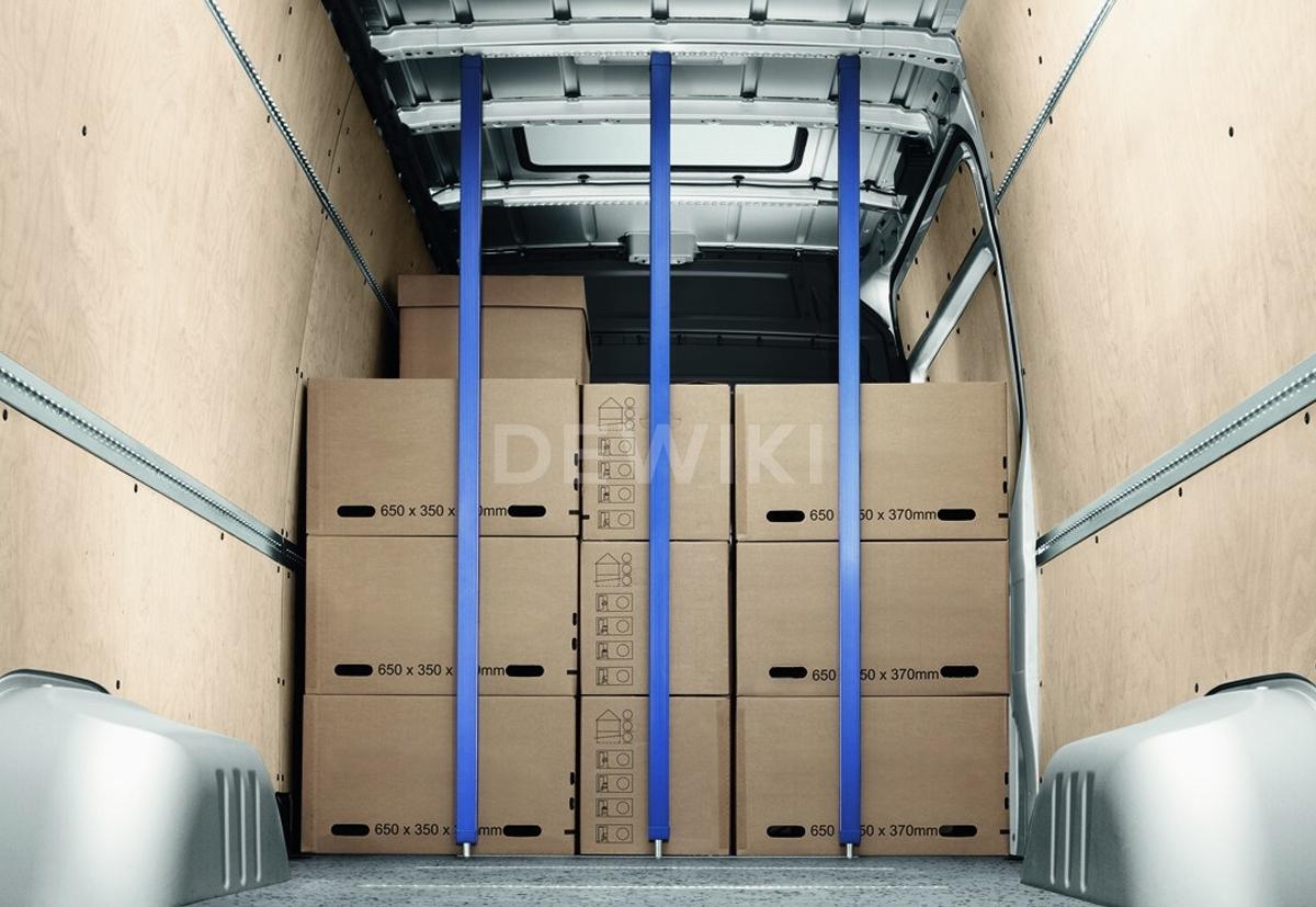 Один можно запустить возле двери багажного отделения, а другой – в конце кабины. Затем груз укладывается на ремни с храповым механизмом.