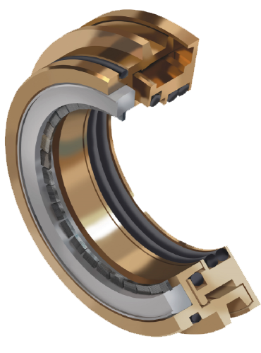 Специально разработанная группа уплотнений для подшипников и двухвальных смесителей из ряда металлических и полиуретановые компоненты. Подшипники размещаются снаружи смесителя в корпус специальной конструкции, препятствующий попаданию цементных растворов, если уплотнение выход из строя должен произойти, поэтому при правильном регламентном обслуживании продолжительность жизни производительность каждого подшипника может превышать 500 000 м³. Структура лабиринтного уплотнения заключает в себе смазка, обеспечиваемая автоматизированной системой смазки, для создания уплотнения, предотвращающего затирку от проникновения в подшипник.