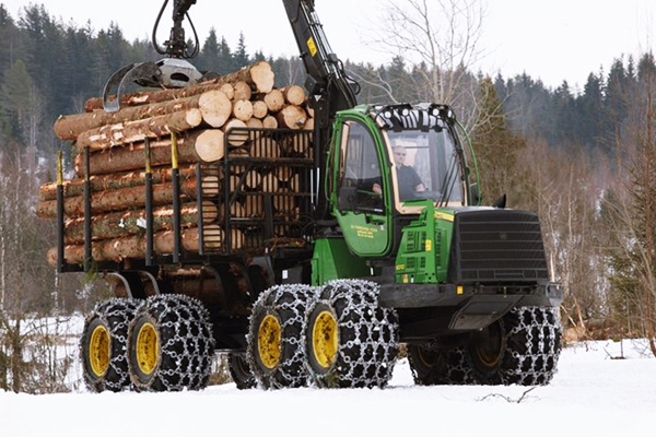 - След — более легкое оборудование нанесет меньше вреда лесной подстилке. При лесозаготовке форвардеры наносят меньший ущерб, поскольку полностью отрывают бревно от земли (в отличие от трелевочных машин, которые тащат бревна по лесной подстилке).