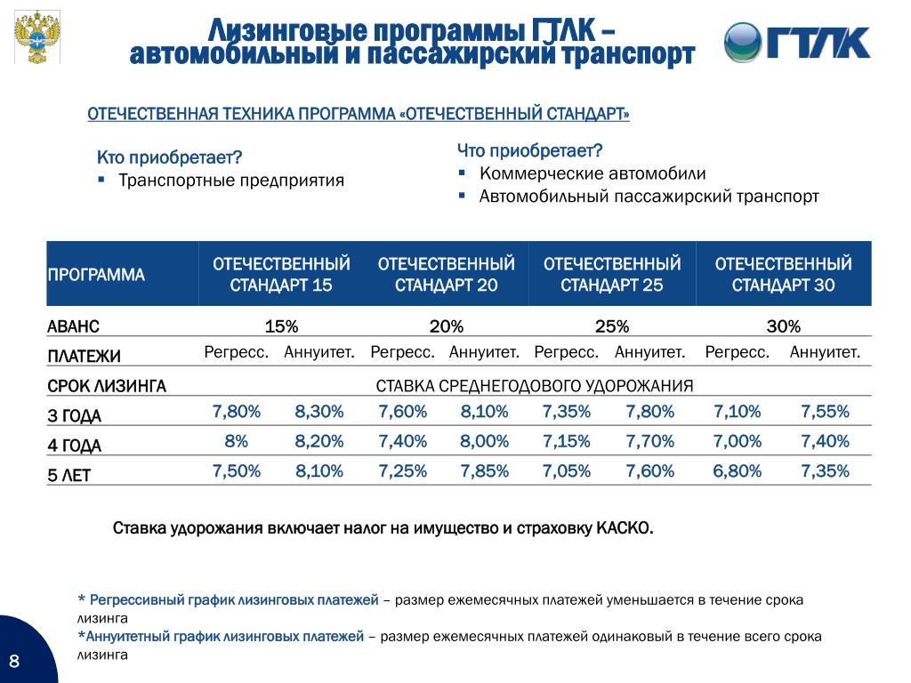 Стандартные условия лизинга предполагают внесение авансового платежа в размере от 10 до 30% от стоимости предмета лизинга.