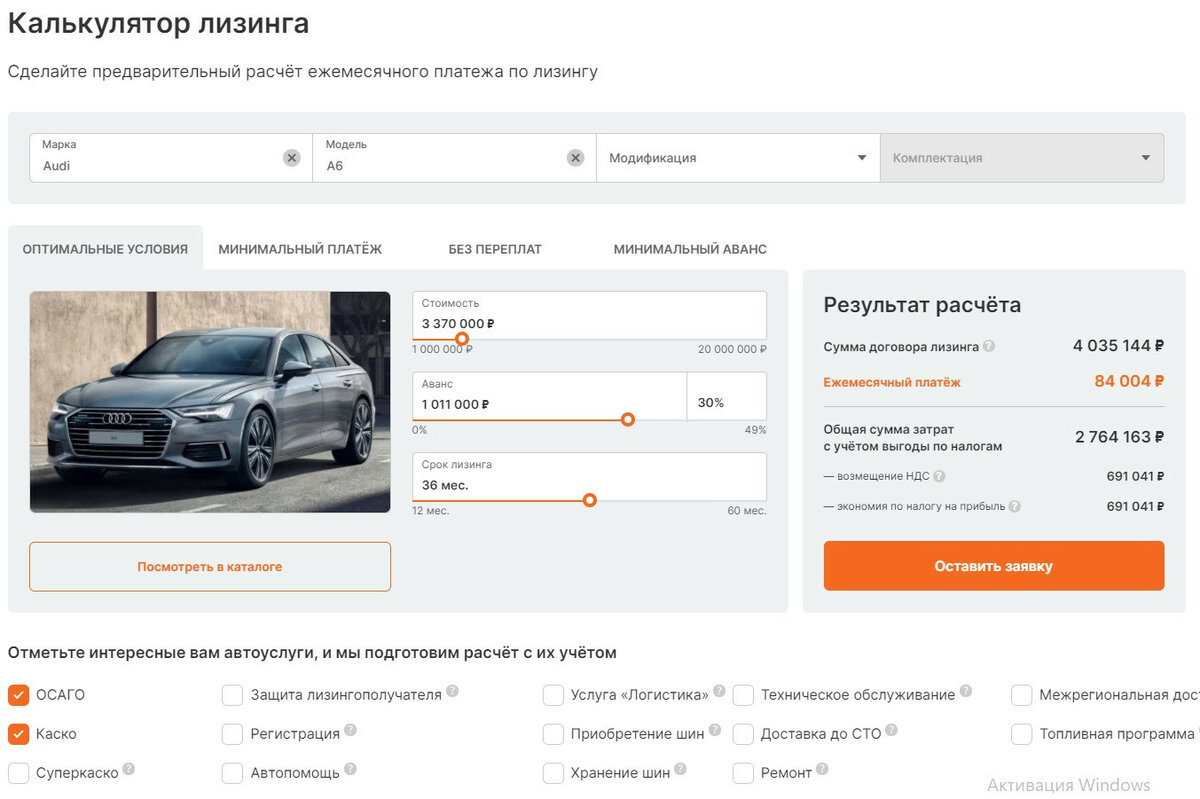 расчет лизинга автомобиля, спецтехники и оборудования онлайн