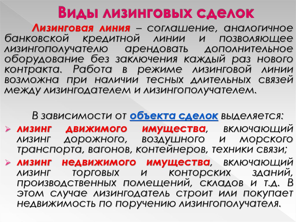 совокупность основных параметров лизинговой сделки. Основные условия лизинга: срок лизинга, авансовый платёж (первоначальный взнос), балансодержатель предмета лизинга, страхователь предмета лизинга, порядок регистрации техники в ГИБДД, порядок досрочного выкупа предмета лизинга, дополнительное обеспечение по лизинговой сделке.