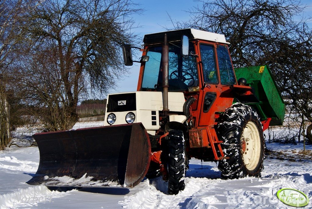 Машина построена по обычной для сельхозтракторов схеме: ДВС размещен спереди, на задний мост мощность передается через трансмиссию. Последняя имеет жесткое соединение с мотором. Трансмиссия включает в себя восьмиступенчатую КПП с реверсом на каждую передачу, фрикционную муфту сцепления, дифференциалы, главную (на заднем мосту), центральную (на переднем мосту) и конечную передачи, блокировку переключения передач, ходоуменьшитель, раздаточную коробку, а также механизм, который блокирует запуск двигателя при включенной передаче.