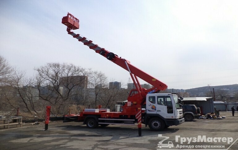 Возможно использование крана-гидроманипулятора в качестве автовышки с люлькой для любых видов фасадных отделочных работ, монтажных работ на высоте до 28 метров!
