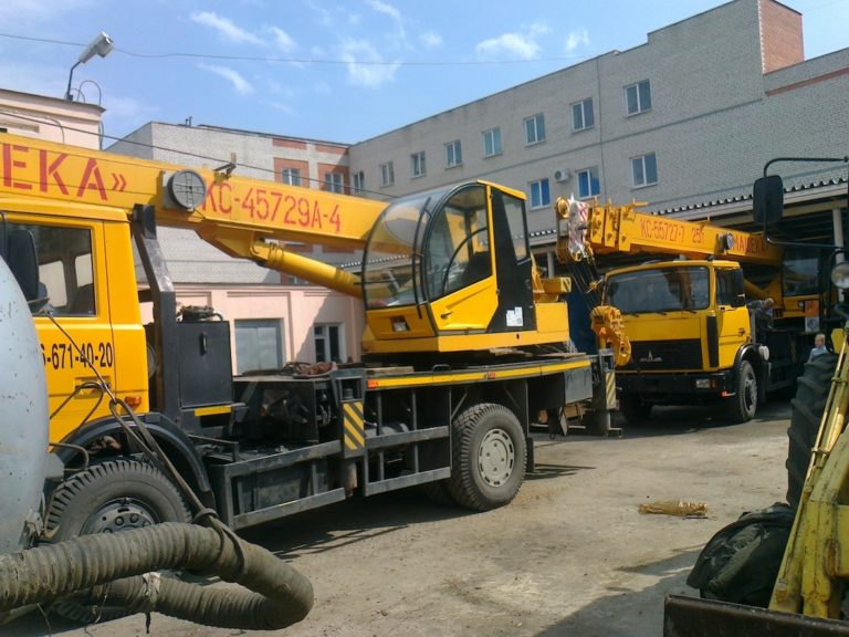 Оборудование типа КС3579 – 15-титонник, устанавливается на шасси грузового МАЗа. Самая востребованная модель для городских условий при плотной застройке. Удобен в эксплуатации на работах строительных и для разгрузки, погрузки грузов.