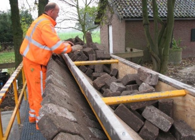 Различают два вида оборудования: тротуароукладчик и гидравлический захват для укладки дорожного полотна.