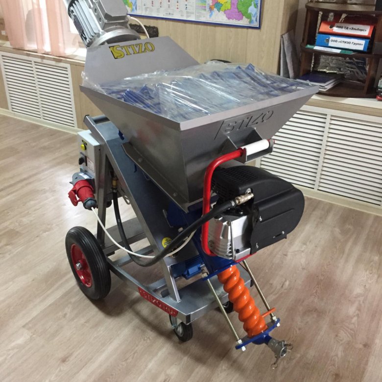 Воздушные компрессоры, осуществляющие подачу воздуха под давлением, входят в стандартную комплектацию штукатурных машин или используются вместе со шнековыми транспортными насосами.