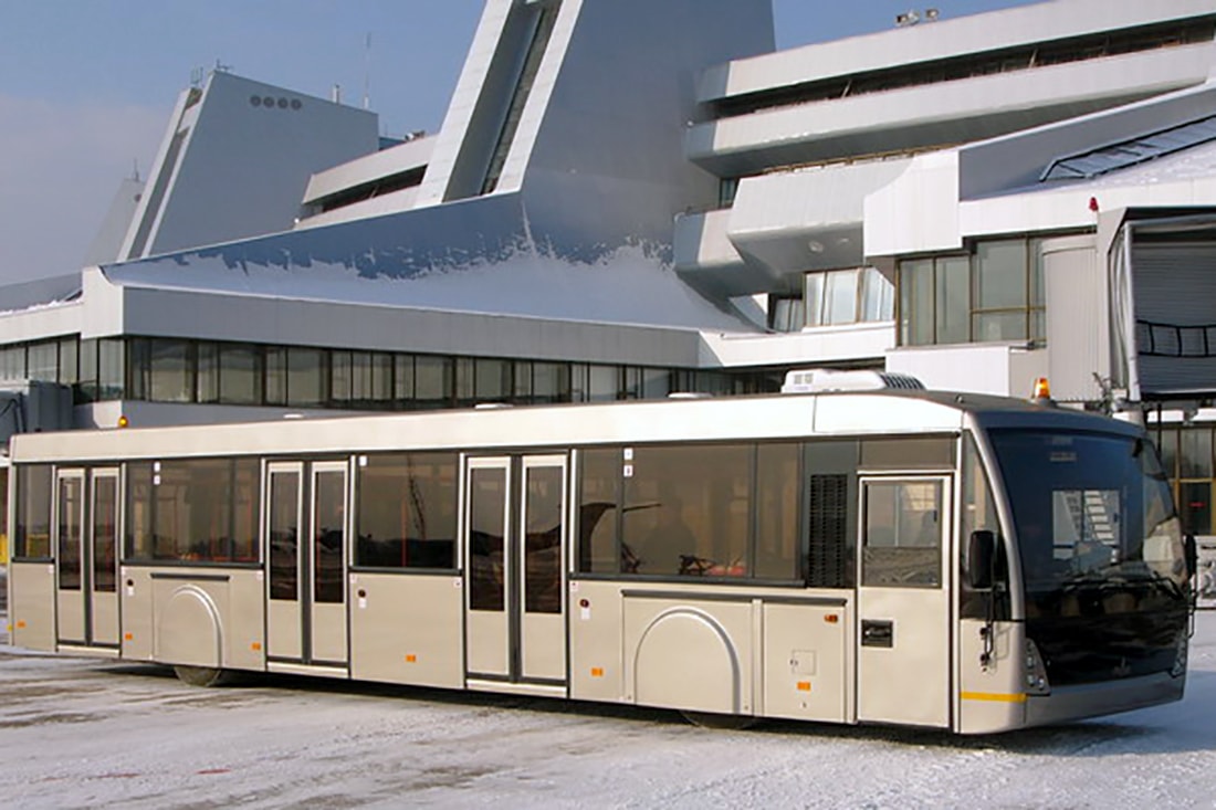 Минский автомобильный завод МАЗ представил первый в СНГ автобус, специально предназначенный для транспортировки пассажиров аэропортов от перрона к самолету – МАЗ-171. Сделан по типичной для перронных автобусов переднеприводной схеме с вынесенным вперед двигателем, пассажирский салон оборудован шестью дверями – по три с каждой стороны. Ступенек при входе в автобус нет: высота пола над уровнем дороги – всего 30 сантиметров. Вместимость автобуса МАЗ-171 – 122 человека, что соответствует вместимости основных типов самолетов. Автобус МАЗ-171 оборудован передним приводом, 4-цилиндровым двигателем мощностью 170 л.с., автоматической коробкой передач, с ведущим управляемым мостом и независимой задней подвеской. В автобусе крышные вентиляторы, водительское место оборудовано кондиционером и видеокамерой заднего обзора. Полная масса аэропортного автобуса МАЗ-171 составляет 22 тонны, снаряженная масса – 13,5 тонны. Автобус способен передвигаться со скоростью до 50 км/ч.