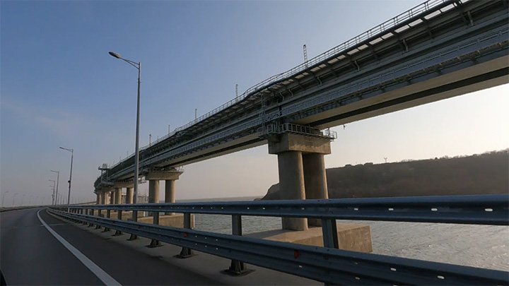 Самый длинный мост в Европе и России. Крымский мост — переход через Керченский пролив, он состоит из автодорожного и строящегося железнодорожного мостов. Пути начинаются на Таманском полуострове и через Тузлинскую косу, остров Тузла и мыс Ак-Бурун ведут в Керчь. Длина моста 19 км, из которых на автомагистраль приходится почти 17 км. Автодорожный мост состоит из четырехполосной скоростной дороги категории IБ с расчетной скоростью движения 120 км/ч.