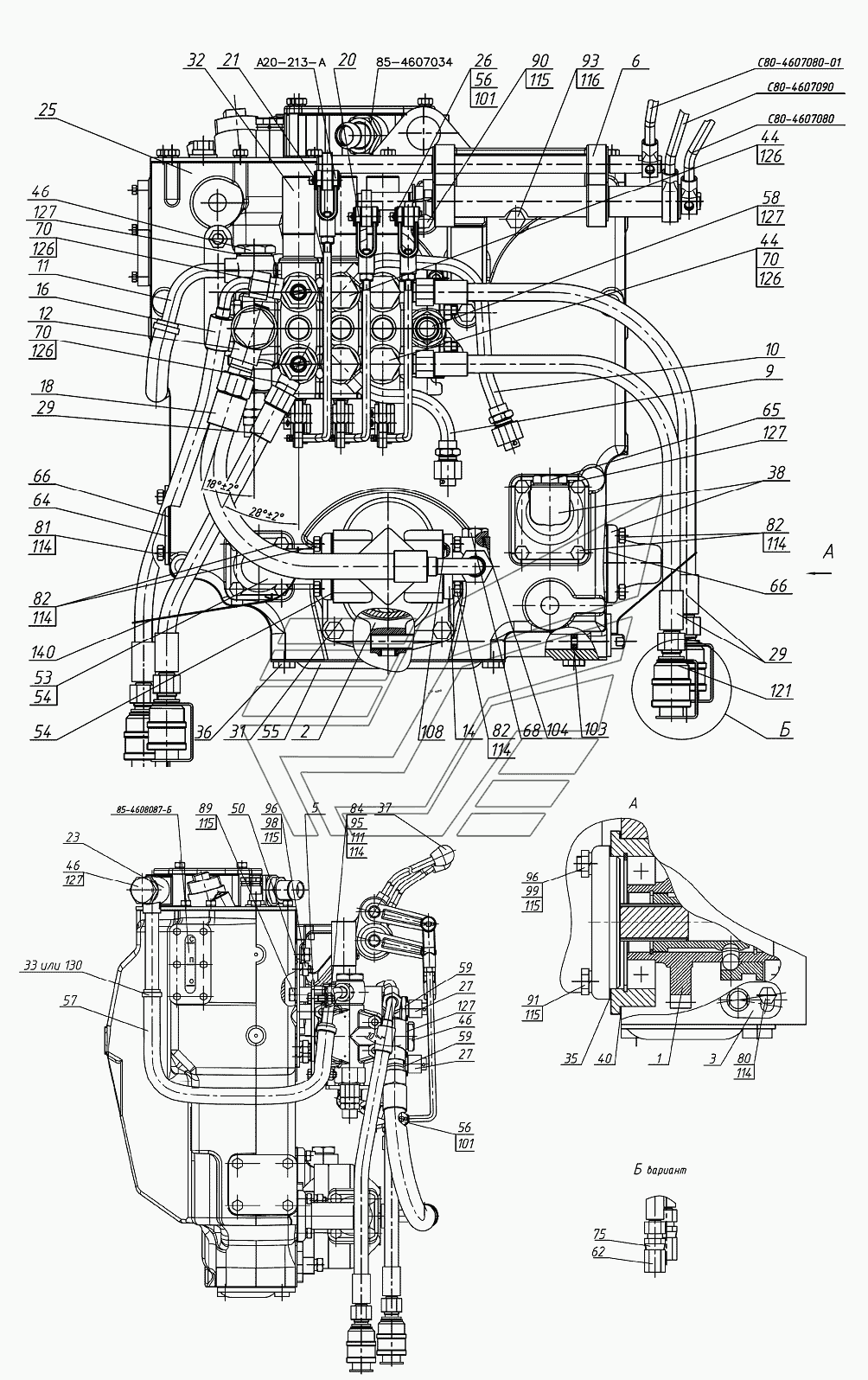 В зависимости от размещения гидровлического оборудования дополнительный распределитель размещают на задней стенке кабины или на правой передней стенке, вместо нижнего смотрового обзорного окна. Узел выносится наружу кабины, рычаги выводятся внутрь.