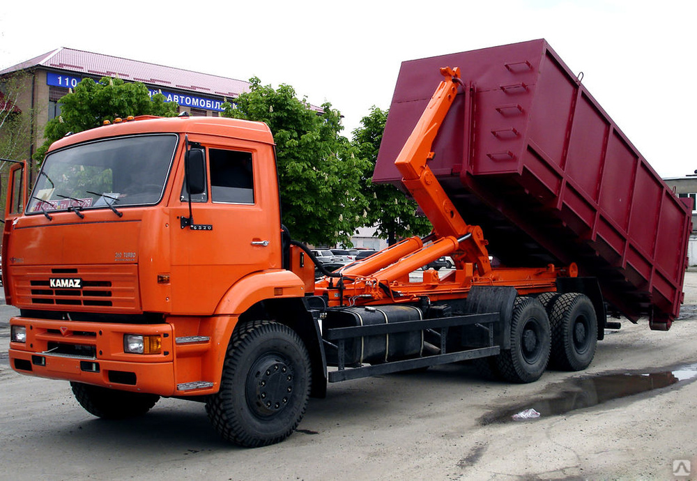 Коммунальная техника для вывоза строительного и крупногабаритного мусора с помощью контейнера типа “лодочка”