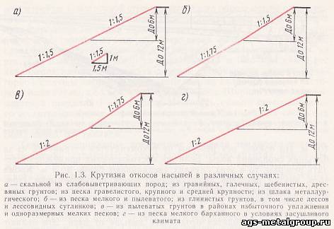 Расчет уклонов, грунта и материала насыпи