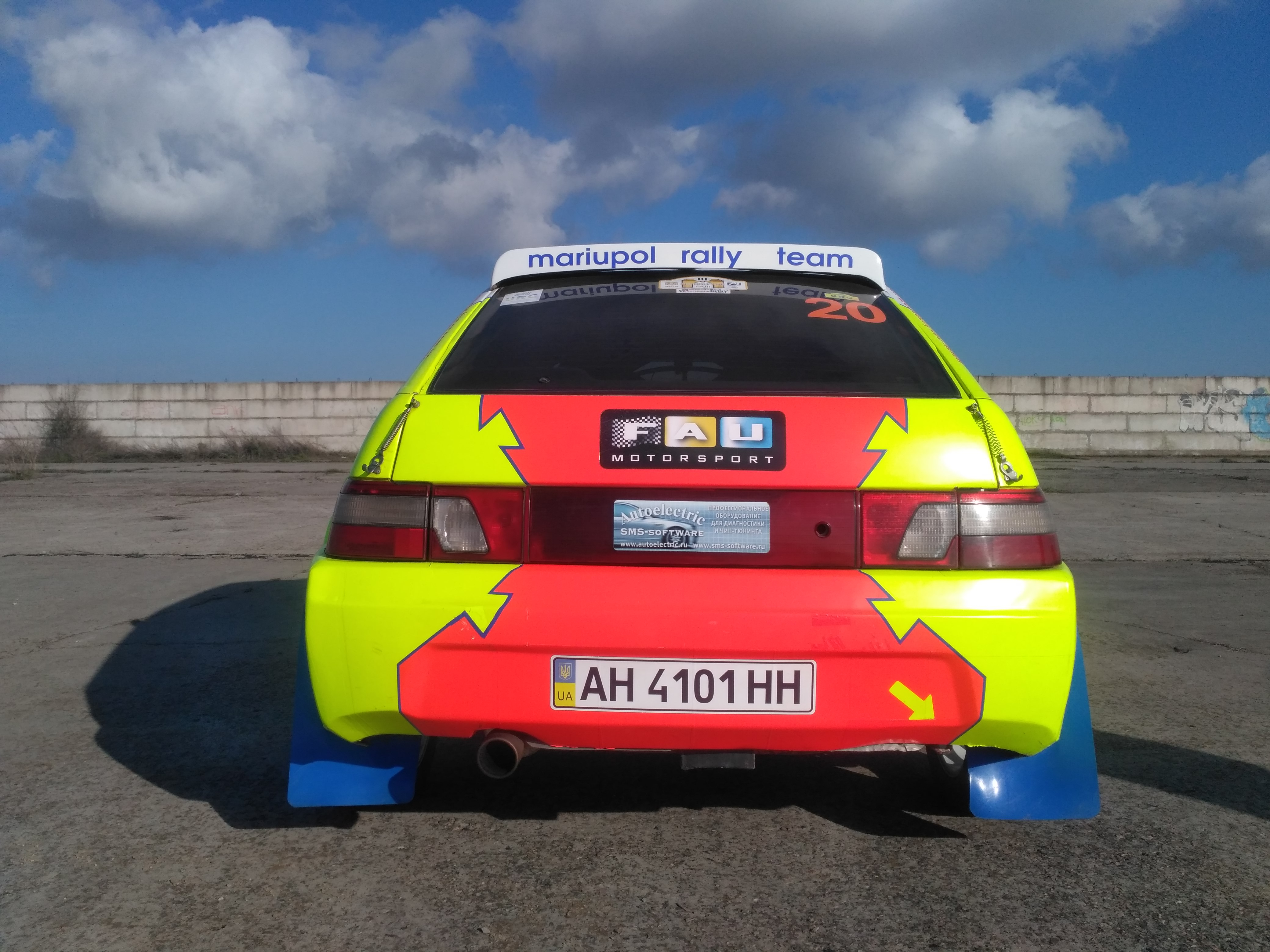 с. при 7900 об/мин + амортизаторы Koni Sport + пружины H&R Sport + верхние опоры «Асоми» + подрамник с треугольными рычагами (копия ВАЗ-2112 Super 1600) + кроссовая задняя балка от «Калины» (с поперечными растяжками) + передняя, задняя распорки между чашками +толстый стабилизатор + спереди четырехпоршневые суппорта JBT + тормозные диски 15’ + задние дисковые тормоза на суппортах 2108 + вакуумный усилитель и ГТЦ Lucas + вертикальный гидравлический ручник с ВАЗ-2112 Super 1600 + рычажковый регулятор давления тормозов Tilton + электроусилитель руля